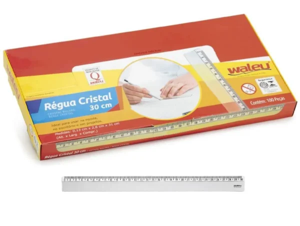 Régua Cristal Fina Waleu 30 cm – Caixa com 100 Unidades